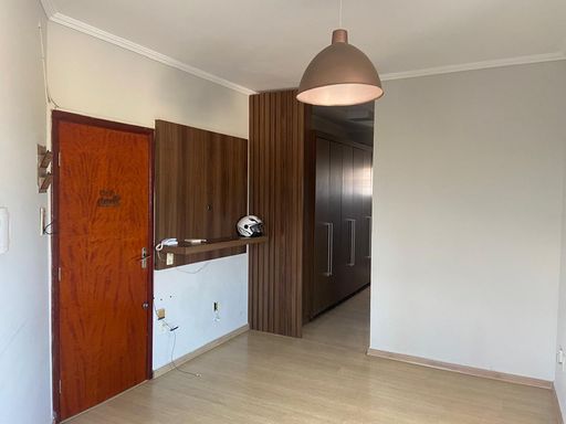Sala, cozinha, banheiro social, dois quartos, armário planejado, lavanderia e uma vaga de garagem coberta